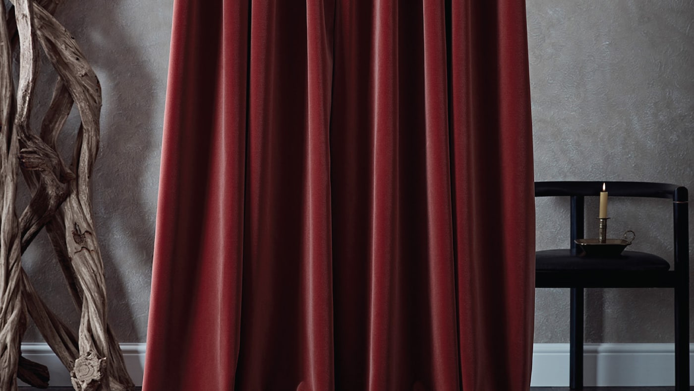 Cotton velvet curtains in a rich Flamenco, from de le Cuona’s Refined Rogue collection