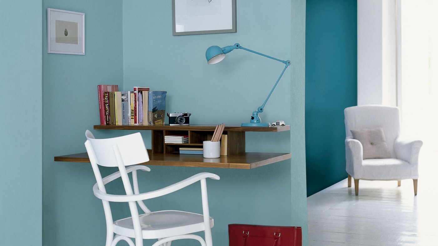 Laptops, tablets and mobiles make working spaces in the home increasingly easy to define. Our flexibility means that a well-lit corner, a bit of wall space and even the end of a dining table can all work perfectly. Use colours that help you focus. Try a deep red to paint a shape or section on the wall to outline your space and get to work!