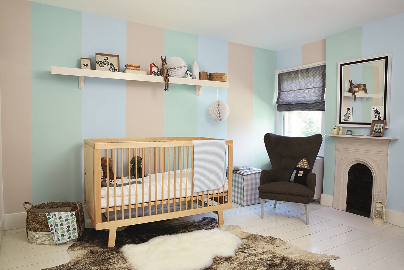 Set a dreamy backdrop to a child’s bedroom with soft, chunky stripes for a calming yet not-too-grown-up setting. Light shades of peach, blue and beige play off well against each other. Use them in regular intervals to create a relaxing, cosy space for your young ones.