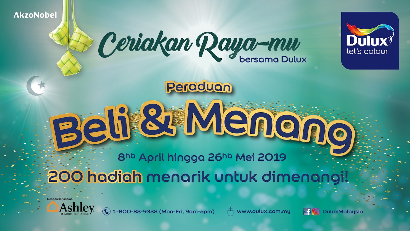 Hari Raya is fast approaching, and what better way to celebrate it than with new furniture and electrical appliances for your home? Join our Dulux Spend & Win Contest now and you might just walk away with some! Follow the steps below to join our contest: