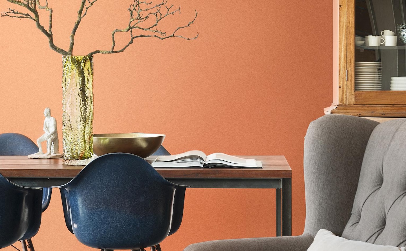 A bright Chanel Orange wall adds a youthful exuberance to a main room