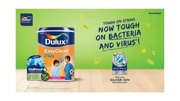 Dulux Easyclean Plus with new Silver Ion Technology, it comes with an added benefit of anti-viral property that helps to effectively work against certain virus.
